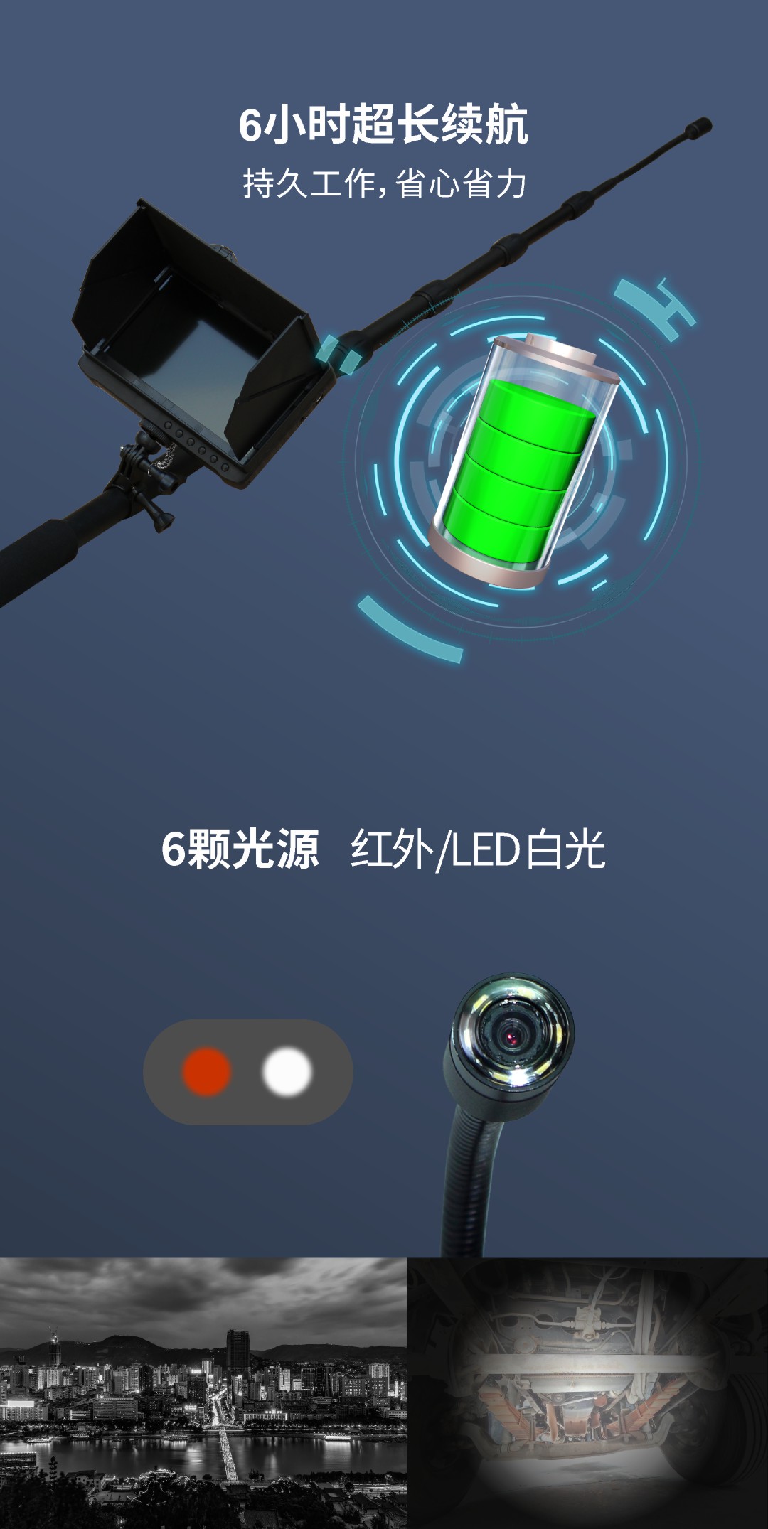 優(yōu)勢(shì)特點(diǎn):500萬(wàn)像素;5米可伸縮調(diào)節(jié)桿;高空檢查專用